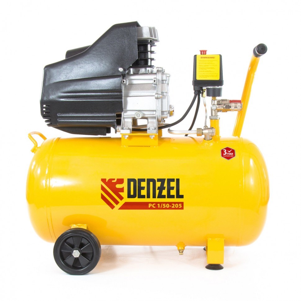 Пневматический компрессор Denzel 50 л 58066 предназначен для обеспечения сжатым атмосферным воздухом оборудования, аппаратуры и инструмента, применяемого в бытовых целях. Использование компрессора позволяет значительно сэкономить электроэнергию, а также повысить эффективность работы. Компрессор способен производить 206 л/мин сжатого до 8 атм воздуха, который нагнетается в ресивер общим объемом 50 л. Для работы аппарата необходимо переменное напряжение 220 Вольт и частотой 50 Гц.Компрессор снабжен следующими средствами контроля, управления и защиты:
