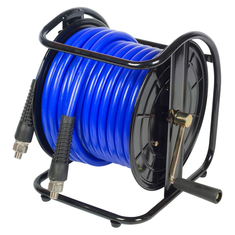 Шланг на открытой катушке, полиуретановый 10х15 мм, 20 м, резьба 1/4" МАСТАК 681-10020HR предназначен для подведения сжатого воздуха к пневматическому инструменту, подключения пневматического оборудования, а также для проведения воздушных магистралей к рабочему месту. Шланг размещён на катушке, расположенной на специальной раме. Конструкция позволяет разместить шланг на рабочем месте так, как вам удобно, а по окончании работы свернуть шланг и перенести раму с катушкой на место хранения. Дополнительные преимущества • Устойчив к воздействию горюче-смазочных материалов • Возможно использование при температурах от -5 до 60°С • Устойчив к воздействию влаги • Гибок и износоустойчив • Армирован полиэстеровой нитью Техническое характеристики Длина: 20 м Внутренний диаметр: 9,5 мм Внешний диаметр: 14,5 мм Материал шланга: полиуретан Рабочее давление: 15 атм Максимальное давление: 60 атм Фитинги: резьба 1/4", вращающиеся с защитной пружиной
