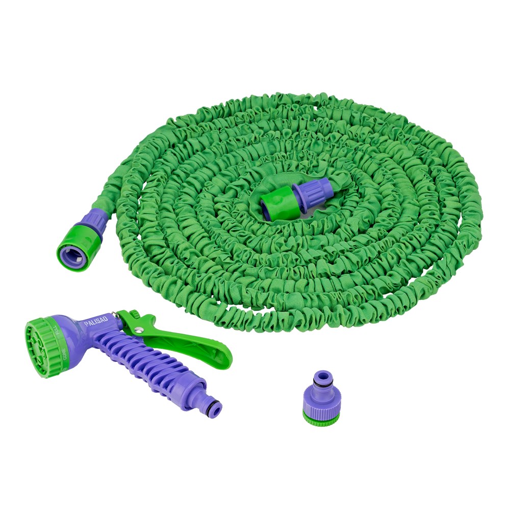 Набор поливочный, усиленый растягивающийся шланг 15 м, 7 режимов пистолет, соединитель, адаптер Palisad 67546