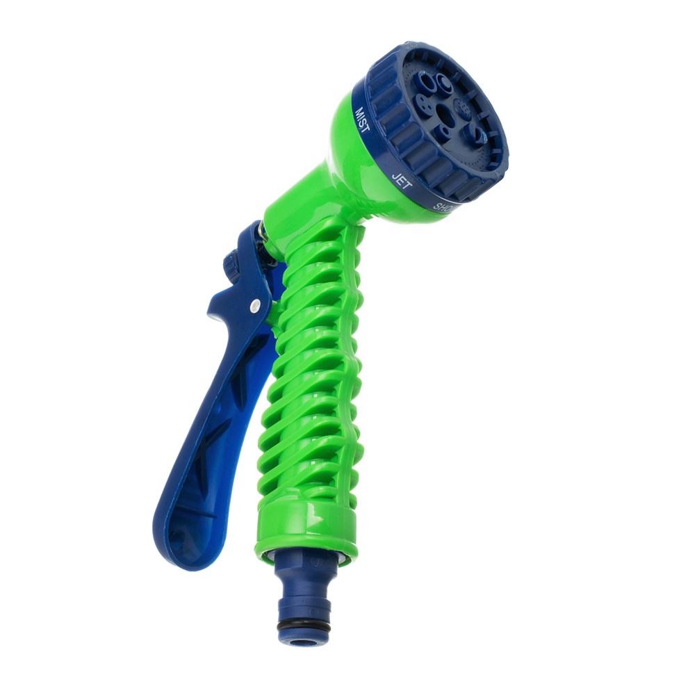 - 7 режимов орошения: Пистолет-распылитель имеет регулируемое сопло, что позволяет выбирать нужный режим полива в зависимости от потребностей.