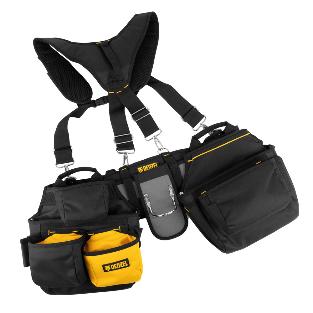 Пояс монтажника усиленный, с лямками, сумки поясные, держатель для молотка Denzel 90290