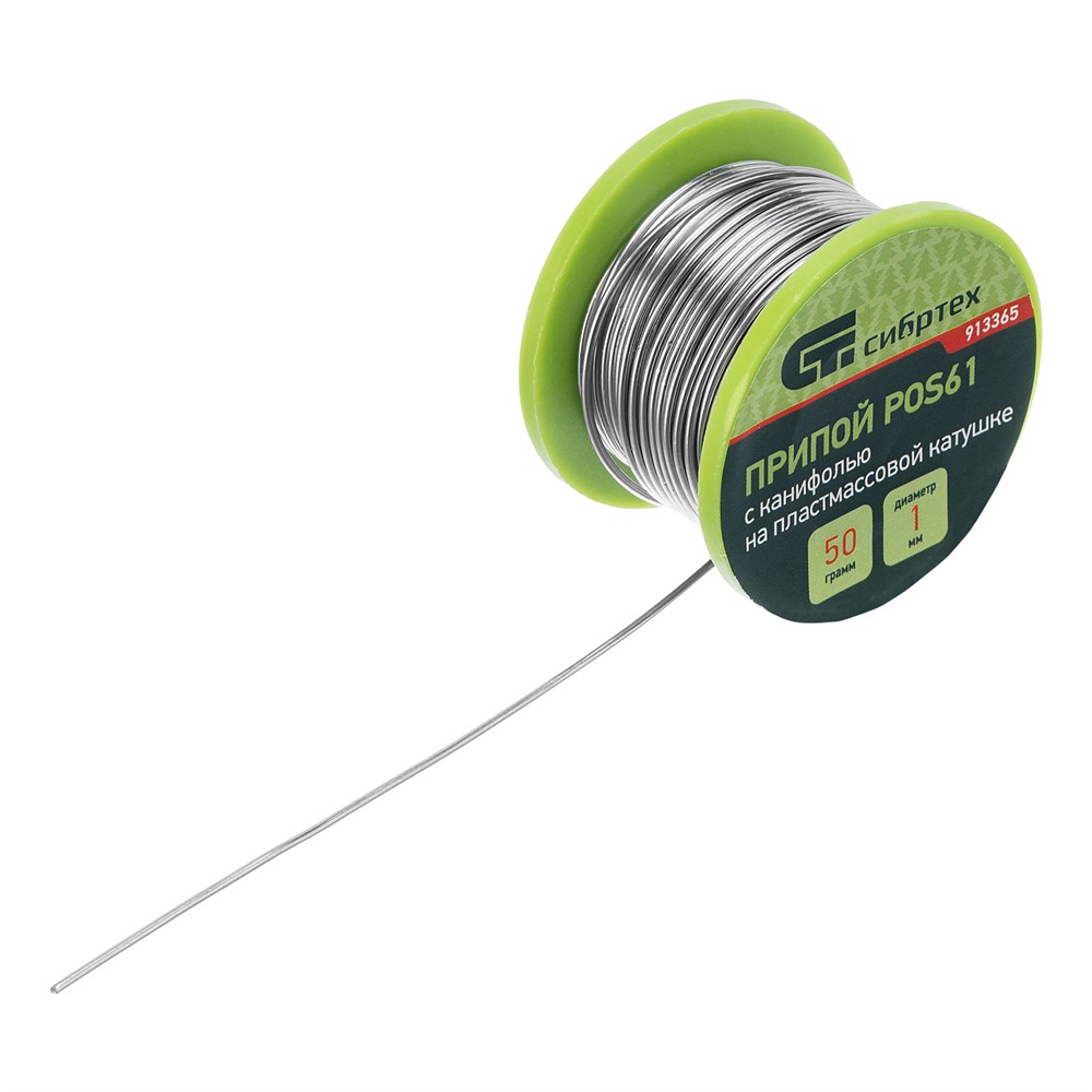 Припой с канифолью, D 1 мм, 50 г, POS61, на пластмассовой катушке Сибртех 913365