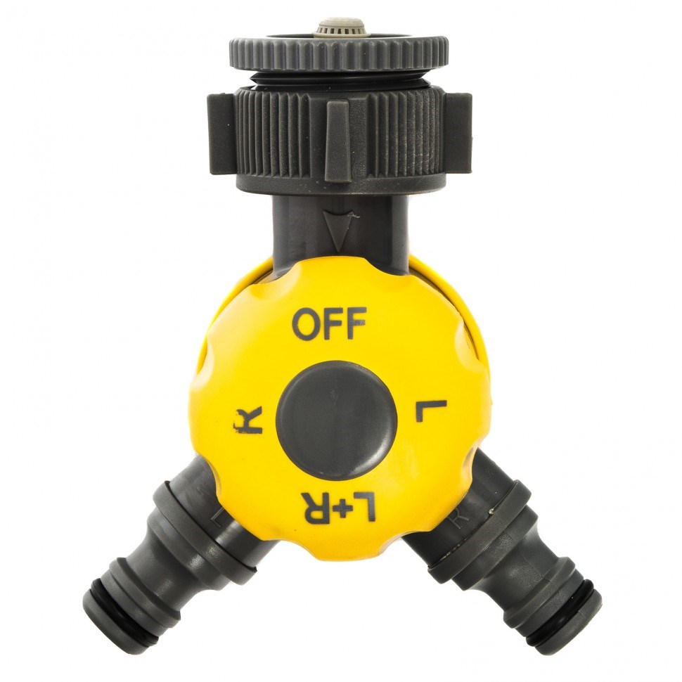 - Функциональность: Переключатель позволяет работать одной из двух линий, обеими линиями одновременно или полностью прекращает подачу воды, что обеспечивает гибкость в настройке системы полива.