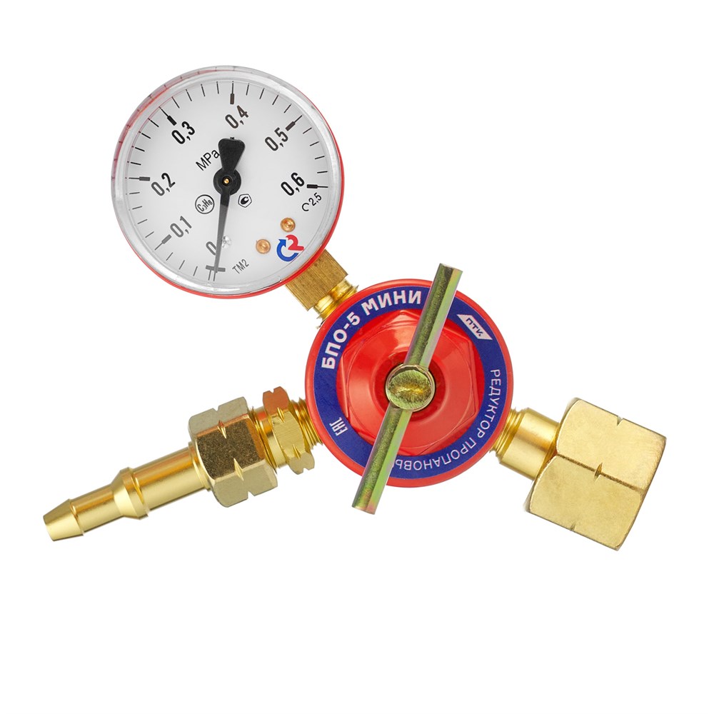 Редуктор пропановый БПО-5 МИНИ - это высококачественное устройство, предназначенное для понижения давления газа, поступающего из баллона, с автоматическим поддержанием постоянного рабочего давления при газопламенной обработке. Он способствует точной настройке рабочего давления, особенно на малых значениях, что делает его незаменимым инструментом для газосварки.