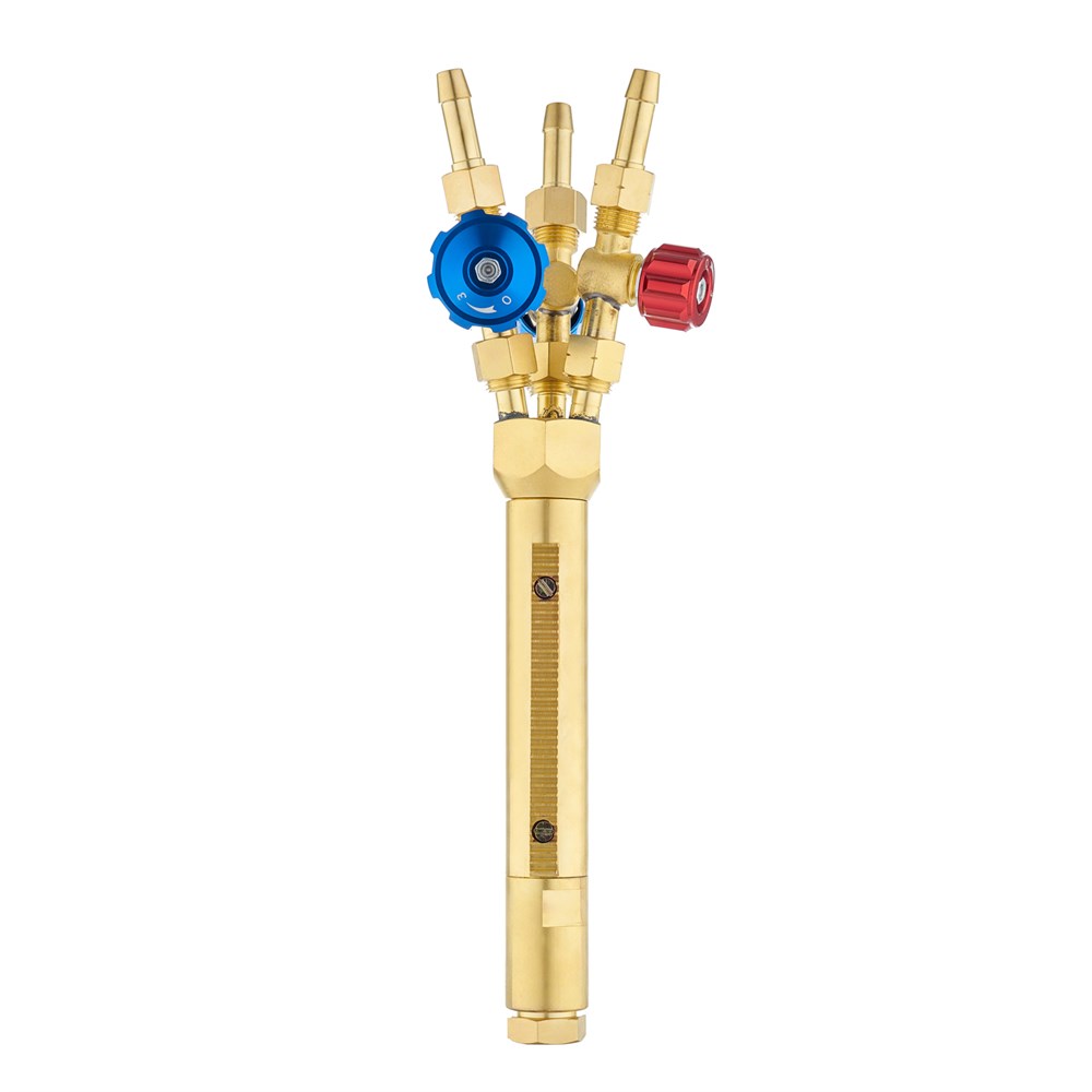 - Оснащен тремя вентилями: КР (кислород режущий), КП (кислород подогревающий) и ГГ (горючий газ).