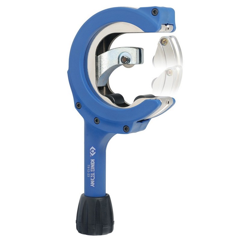 Труборез для стальных труб диаметром 28-67 мм KING TONY 7912-23 предназначен для резки труб диаметром от 28 до 67 мм. Материалы труб: пластик, металлопластик, алюминий, медь, железо, нержавеющая сталь. Применение: Автосервисные мастерские и СТО, производственные предприятия, сантехника и т.д. Особенности и преимущества • Храповой механизм, встроенный в труборез, позволяет работать приспособлением в труднодоступных местах, к примеру, для работ по ремонту и резки выхлопных труб автомобиля. • Прочный шпиндель и закаленные упорные ролики гарантируют точный ход режущего диска по трубе • Специальный закаленный режущий диск гарантирует длительный срок эксплуатации • Режущий диск защищён от контакта с упорными роликами Закаленные упорные ролики Закаленный режущий диск Работа с труборезом 1. Поместите трубу в зев трубореза 2. Регулировочным винтом подведите резак к поверхности трубы 3. Возвратно-поступательными движениями произвХарактеристики