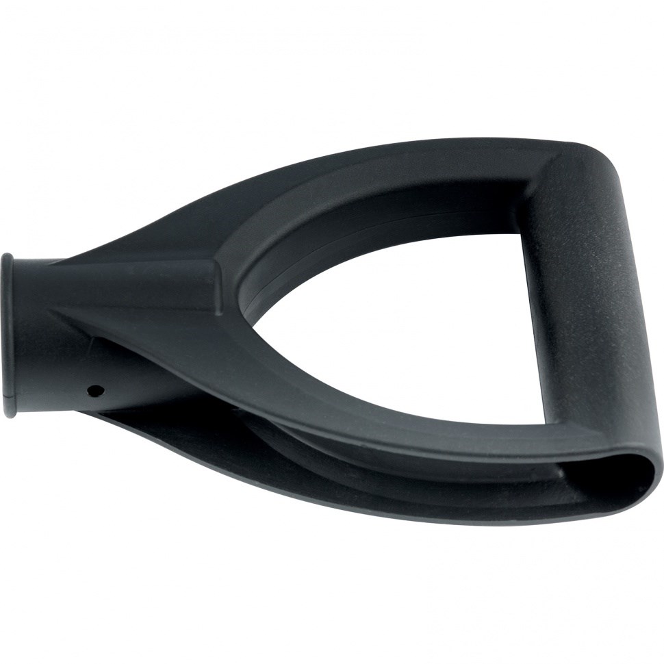 Пластиковая V-образная рукоятка предназначена для удобного использования с лопатами различных производителей, обеспечивая надежный хват и снижение нагрузки на поясницу. Она быстро крепится на черенок с помощью саморезов, что делает ее практичным дополнением к вашему инструменту.