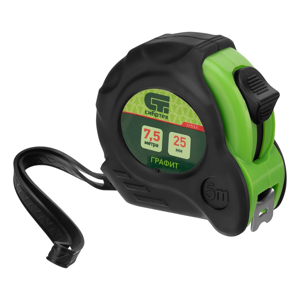 Рулетка измерительная Сибртех корпус,амортизатор,7,5 м 7.5 м 25 мм 32533