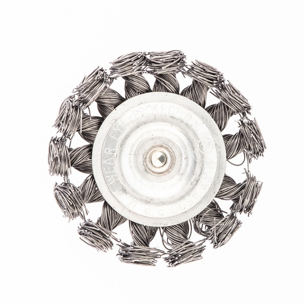 Щетка для дрели, 75 мм, плоская со шпилькой, крученая металлическая проволока 0.5 мм Сибртех 744307
