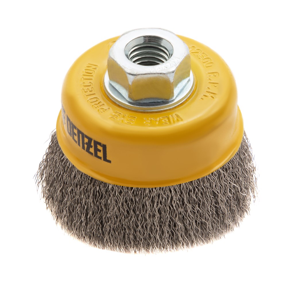 Щетка для УШМ, 75 мм, "Чашка", витая нержавеющая проволока 0.3 мм, М14 Denzel 746043