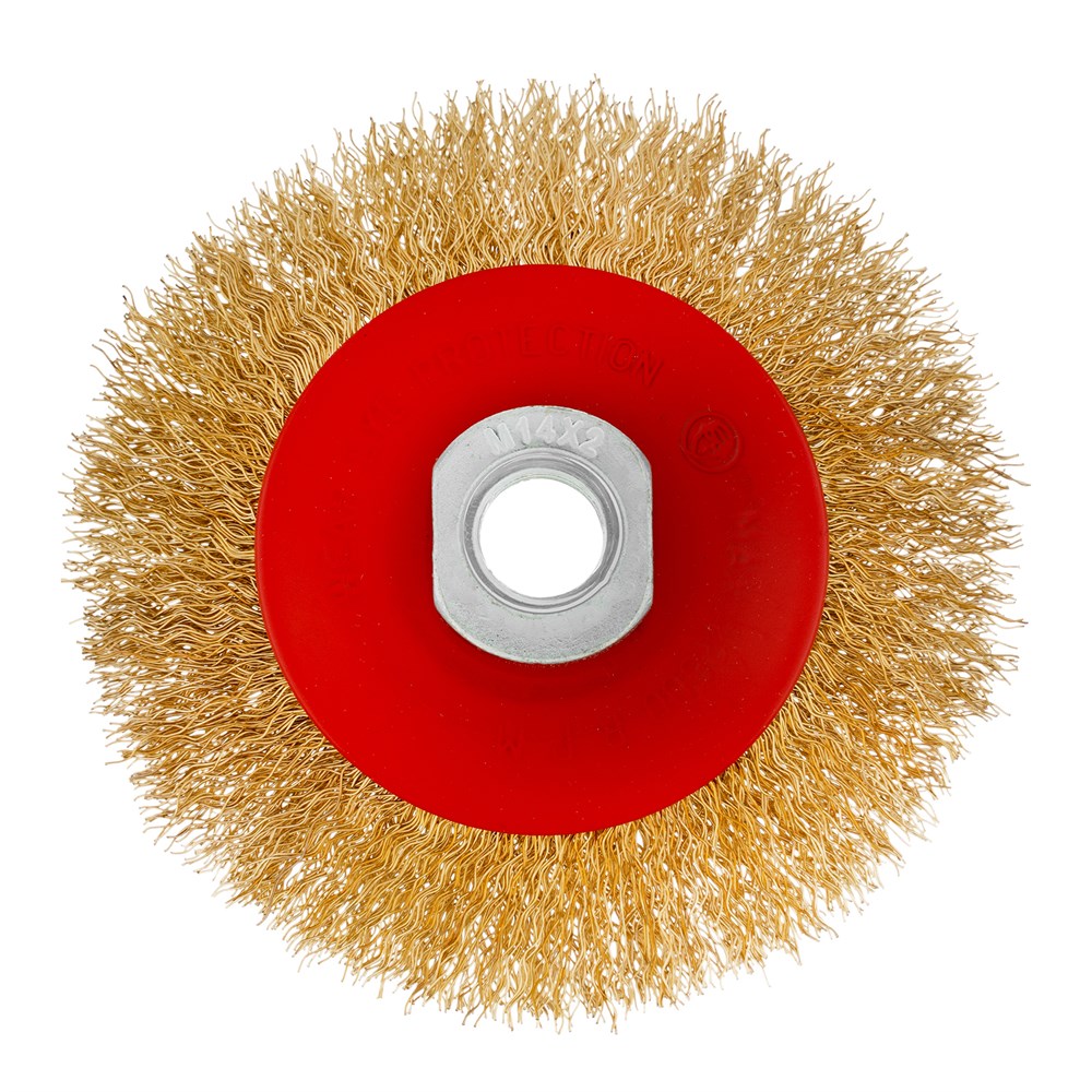 Щетка для УШМ, 100 мм, М14, "тарелка", латунированная витая проволока Matrix