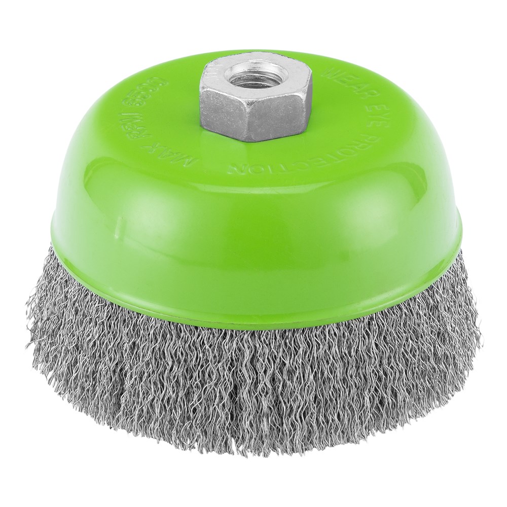 - Удобная установка: Щетка легко крепится на вал УШМ при помощи гайки М14, что позволяет быстро заменять насадки.