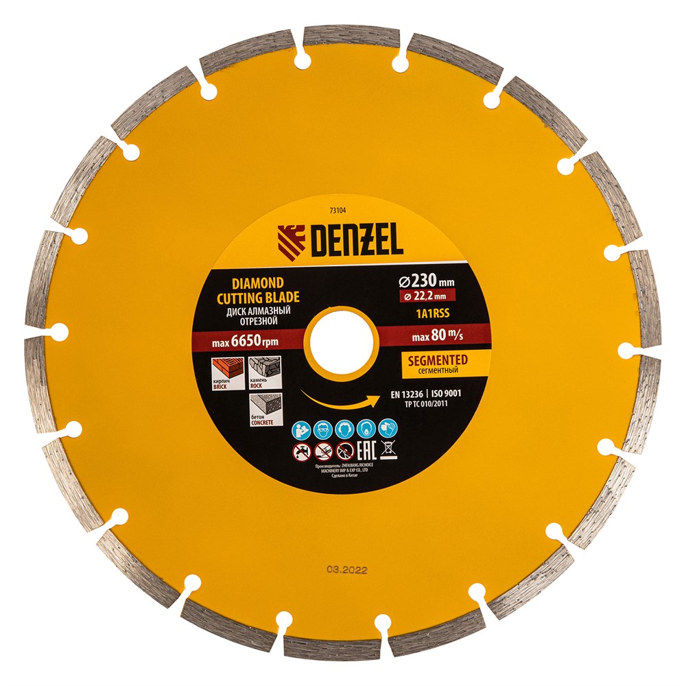 Диск алмазный, отрезной сегментный, 230 х 22.2 мм, сухая резка Denzel 73104
