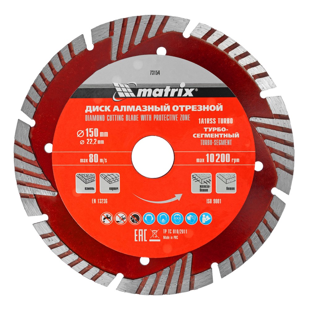 Диск алмазный, отрезной сегментный с защитными сект, 150 х 22.2 мм, сухая резка Matrix Professional 73154