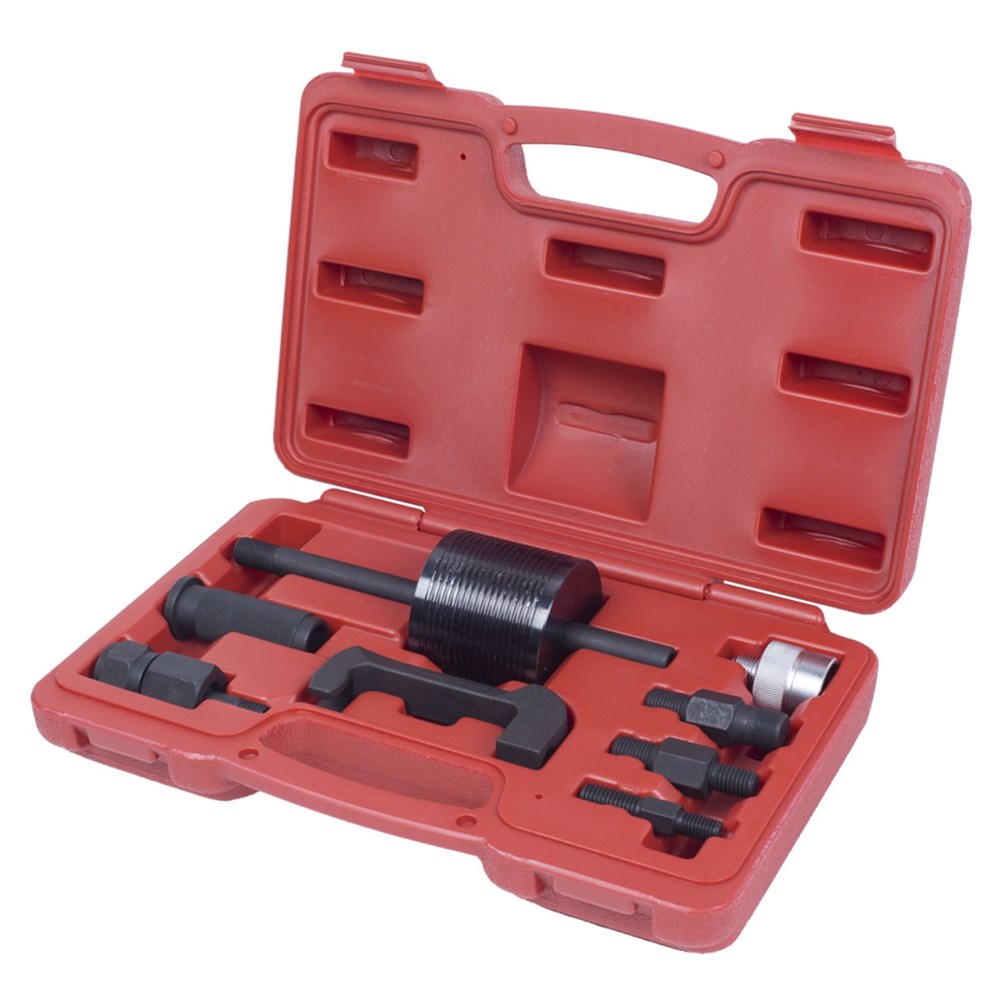 • 9 предметов. • Материал: сталь S45C. • Общая длина: 350 мм. • Состав: скользящий молот (1.75 кг), адаптер М17 х 1.0, адаптер М27 х 1.0 для форсунок типа Bosch, адаптер для съёмника М12 х 1.75. • Для двигателей Daimler benz CDI и Mercedes CDI 611, 612, 613 и др. • Для удаления неработоспособных форсунок без разбора блока цилиндров.