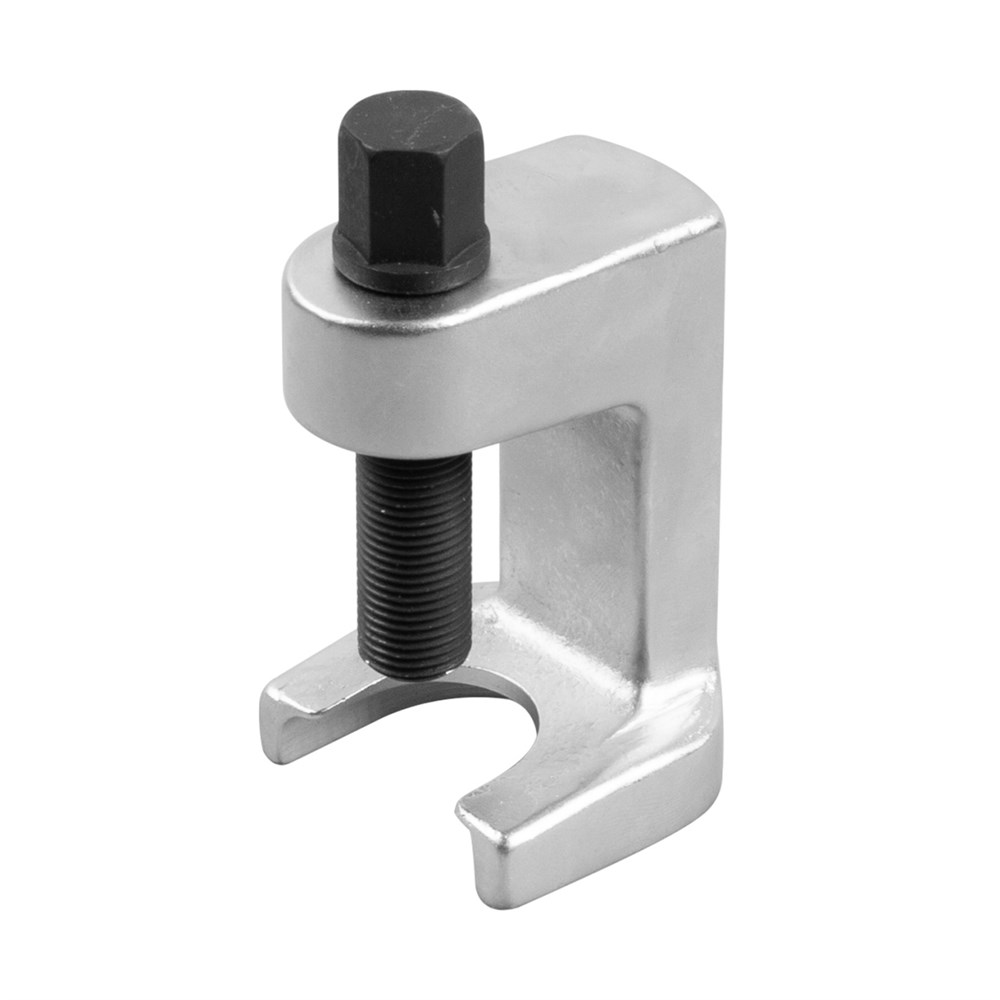 Предназначен для демонтажа шаровых опор, рулевых наконечников, стабилизаторов и пр. Особенностью конструкции является прямое приложение нагрузки к наконечнику непосредственно силовым болтом. Это даёт возможность применения данного съёмника в случаях ограниченного доступа к ремонтному узлу. Применяется для технического обслуживания автомобилей марок: Audi, BMW, Ford, Mercedes, Opel, Renault, Rover, Saab, Volvo, VW, а также японских и азиатских моделей. Описание: Зев: 24 мм Рабочий ход: до 53 мм Размер под ключ: 17 мм