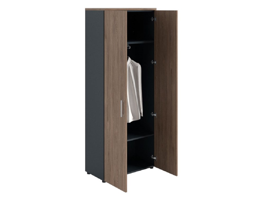 Шкаф ПРАКТИК NW 2080L гардеробный закрытый темный орех/антрацит К35599232017 — это функциональное решение для хранения одежды и аксессуаров в офисном или домашнем интерьере.