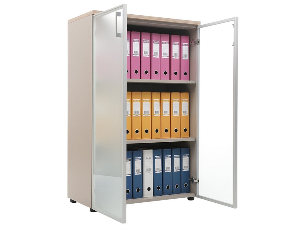 Шкаф со стеклом ПРАКТИК NW 1280/2G вяз натуральный/бежевый К35599381037 предназначен для хранения большого объема документов, рабочих материалов, техники и канцелярских принадлежностей. Каркас и задняя стенка шкафа изготовлены из ЛДСП толщиной 18 мм и соединяются эксцентриковыми стяжками, что обеспечивает высокую жесткость конструкции.