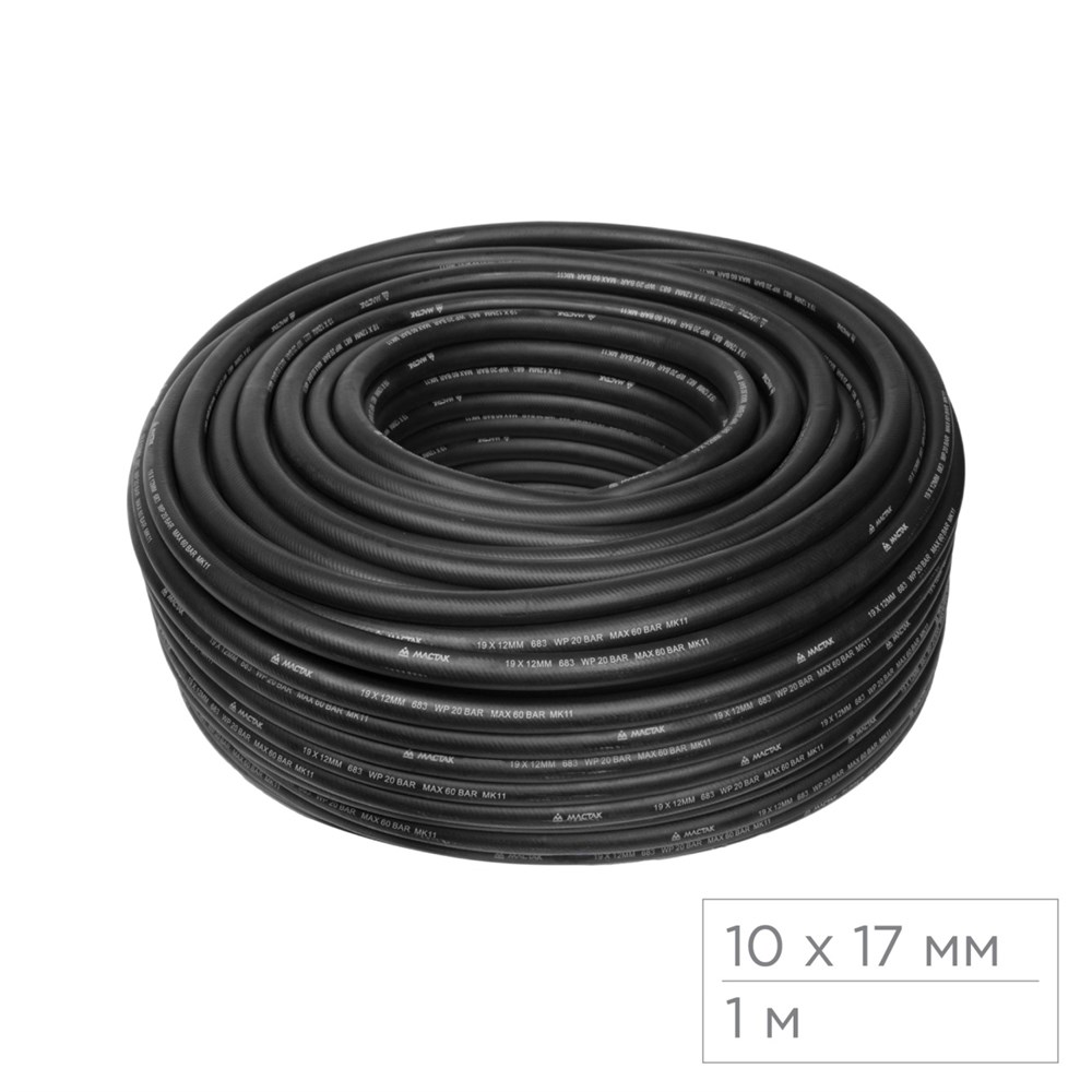 Шланг пневматический 10х17 мм, 1 м, резиновый МАСТАК 683-10100M1 683-10100M1
