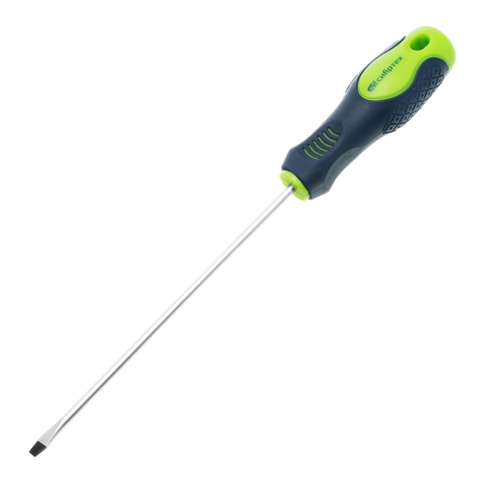 Отвертка Сибртех 11863 – это надежный инструмент, который идеально подходит для выполнения работ, не требующих значительных усилий при затяжке. С её помощью можно эффективно производить монтаж и демонтаж крепежных элементов типа Slotted. Основные характеристики: