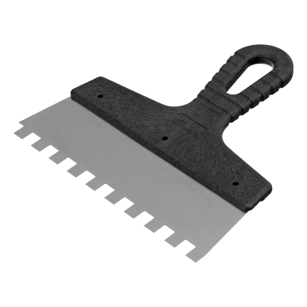 Шпатель из нержавеющей стали, 200 мм, зуб 10 х 10 мм, пластмассовая ручка Сибртех 85482