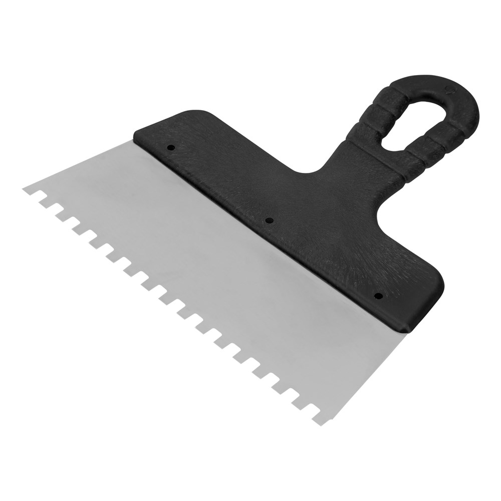 Шпатель из нержавеющей стали, 200 мм, зуб 6 х 6 мм, пластмассовая ручка Сибртех 85464
