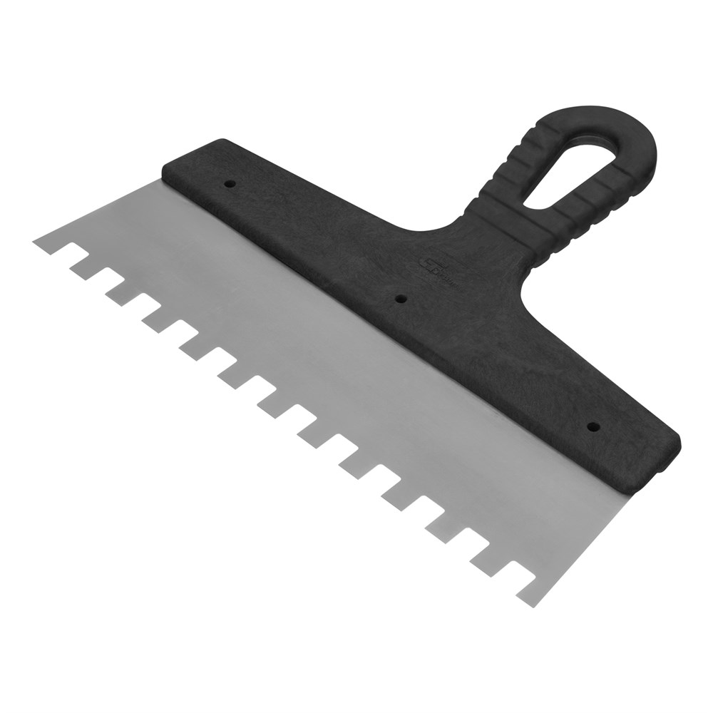 Шпатель из нержавеющей стали, 250 мм, зуб 10 х 10 мм, пластмассовая ручка Сибртех 85500