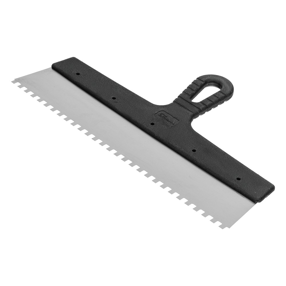 Шпатель Сибртех 85468 из нержавеющей стали – незаменимый инструмент для работников, занимающихся укладкой плитки, мозаики и других строительных работ. Специальное исполнение шпателя с формой зубьев 6 х 6 мм позволяет равномерно распределять клеевой состав по поверхности.