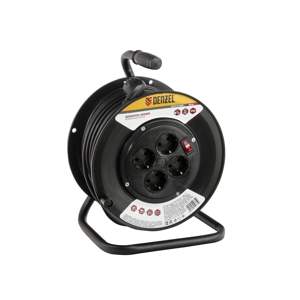 Удлинитель силовой на кабельной катушке, 50 м, 4 розетки, 16 А, серия УХз16 Denzel 95906