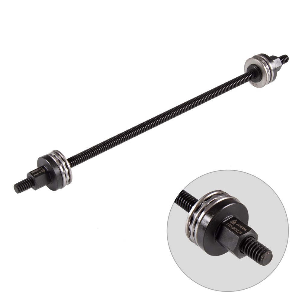 Назначение Демонтаж сайлентблоков, подшипников ступицы, сальников коленвала и т.п. Винт силовой используется в качестве направляющей оси в комплекте с набором оправок МАСТАК 110-20024C. Область применения Станции технического обслуживания (СТО), автосервисы, автомастерские, бытовое применение. Рабочий размер резьбы: M10 х P1,5 Общая длина винта: 350 мм Размер под ключ: 17 мм Материал: инструментальная сталь, оксидированное покрытие. Вес: 0,750 кг