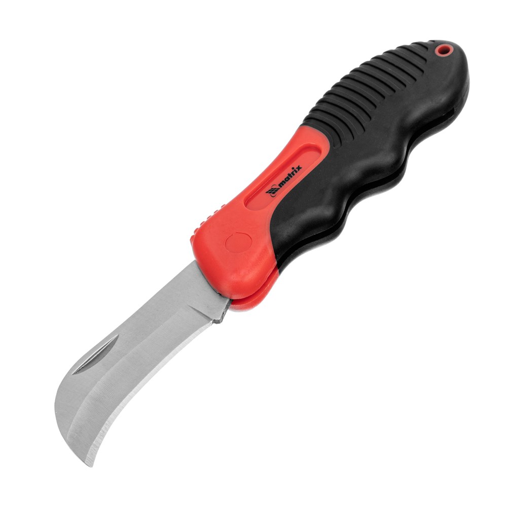 Нож электрика, складной, изогнутое лезвие, эргономичная двухкомпонентная рукоятка Matrix 78986