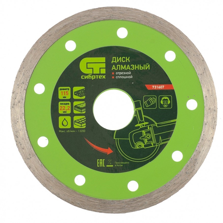 Представляем вашему вниманию алмазный отрезной сплошной диск Сибртех 731607, идеально подходящий для мокрой резки различных материалов. Диск диаметром 115 х 22,2 мм предназначен для работы с керамогранитом, керамической плиткой, мрамором и камнем. Он совместим с болгарками и плиткорезами с посадочным диаметром 22,2 мм.