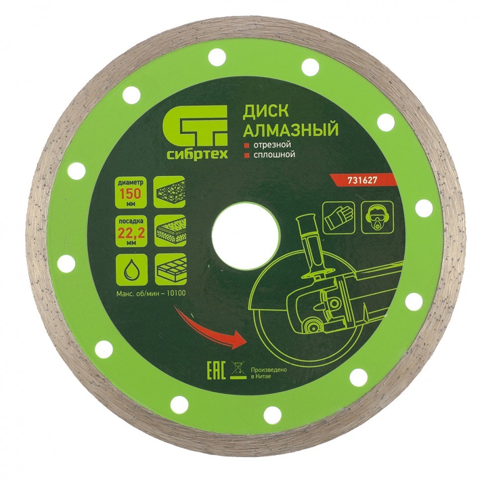 Диск алмазный, отрезной сплошной, 150 х 22.2 мм, мокрая резка Сибртех 731627