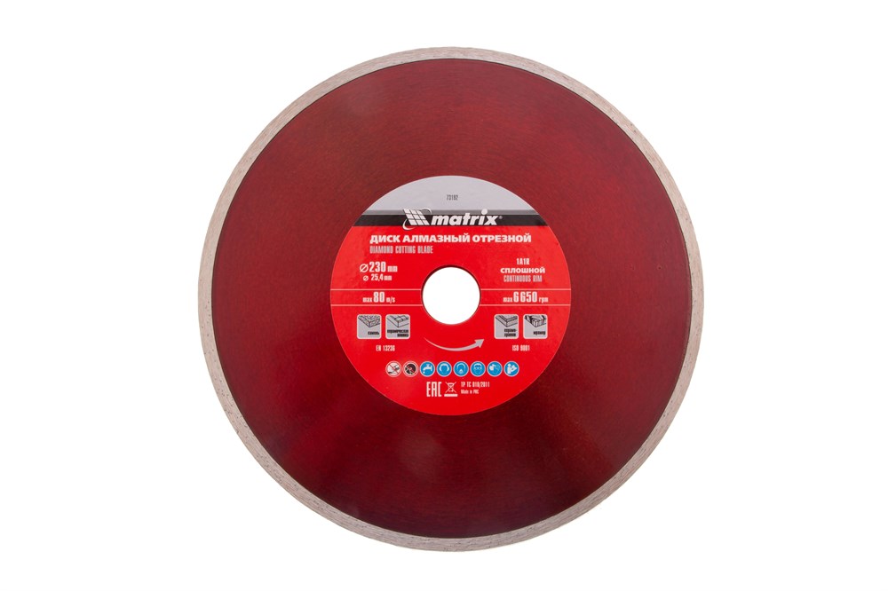Представляем вам отрезной алмазный сплошной диск Matrix 73192, который идеально подходит для мокрой резки различных материалов, таких как мрамор, керамическая плитка, керамогранит, натуральный и искусственный камень. Этот диск имеет диаметр 230 х 25,4 мм и устанавливается на углошлифовальную машину или плиткорез с посадочным диаметром 25,4 мм.