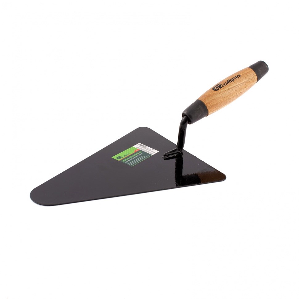 Кельма обладает полотном в форме закругленного треугольника с прямыми гранями, что позволяет удобно удалять излишки раствора и работать в труднодоступных местах. Деревянная усиленная ручка обеспечивает комфорт при использовании и надежный захват.