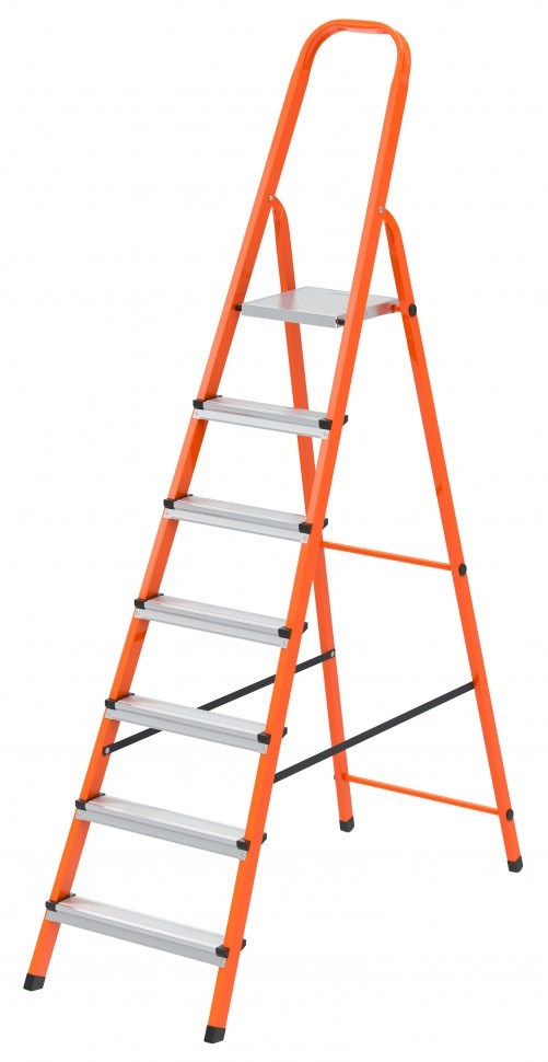 Стремянка, 7 ступеней, стальной профиль, ступени сталь, оранжевая, Сибртех 97967