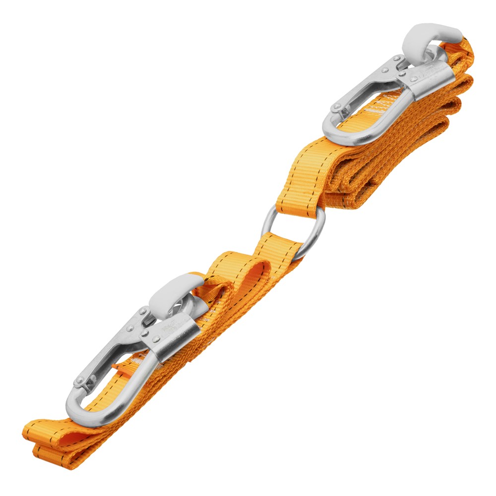 - Безопасная работа: два прочных стальных карабина обеспечивают надежную фиксацию, а встроенный амортизатор снижает риск травматизма при падении.