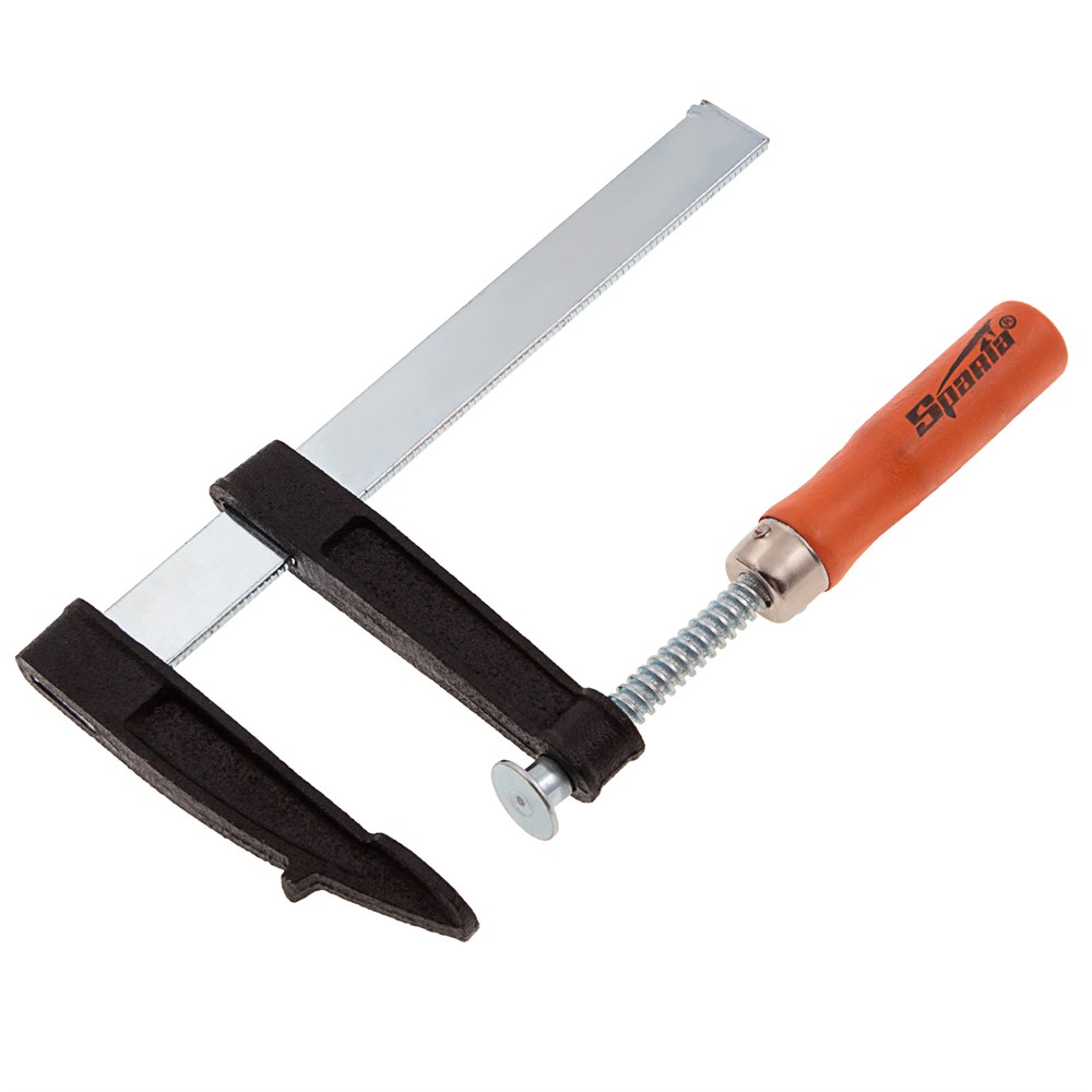 Струбцина F-образная Sparta 204245 является отличным выбором для профессиональных мастеров и любителей, обеспечивая высокую производительность и надежность в работе. Элементы конструкции изделия выдерживают высокие температуры, что делает его подходящим также для сварочных работ (при этом защитные накладки необходимо снять).