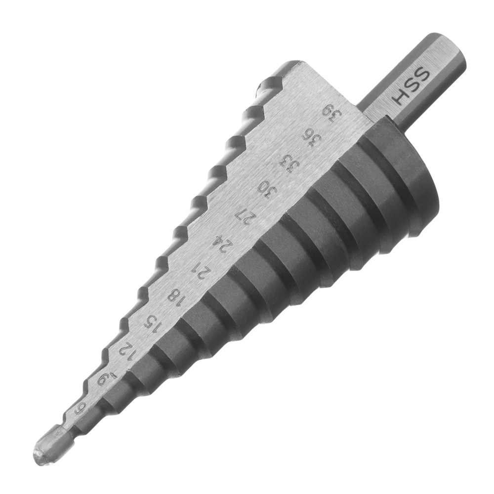 Сверло ступенчатое, 4-6-9-12-15-18-21-24-27-30-33-36-39 мм, Р6М5, трехгранный хвостовик Барс 72363