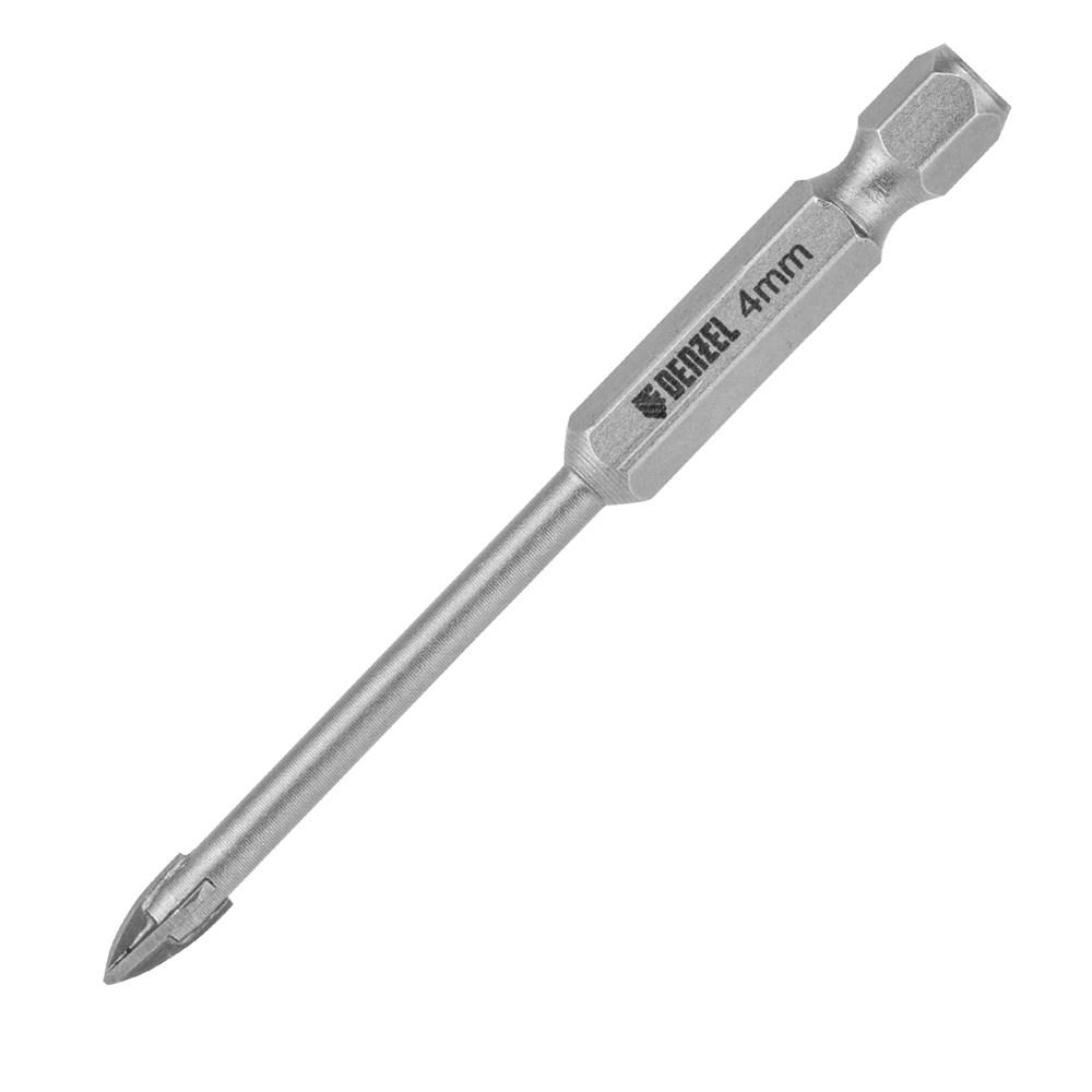 Сверло по керамической плитке 4 мм, крестовая пластина, шестигранный хвостовик// Denzel 728023