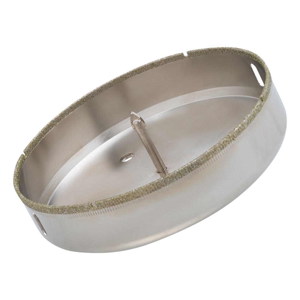 Для достижения лучших результатов рекомендуется использовать водяное охлаждение, что значительно продлевает срок службы оснастки. После заглубления алмазной коронки на 1-2 мм желательно снять центрирующее сверло.