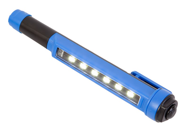 Фонарик изготовлен в виде ручки, крепление – клипса + магнит. Шесть светодиодных элемента вмонтированы вдоль корпуса фонарика. Клипса-магнит может поворачиваться относительно корпуса фонарика на 360 градусов, таким образом, закрепив фонарик у себя на одежде, или установив при помощи магнита на металлической поверхности, вы можете направить световой поток фонарика в нужную сторону.