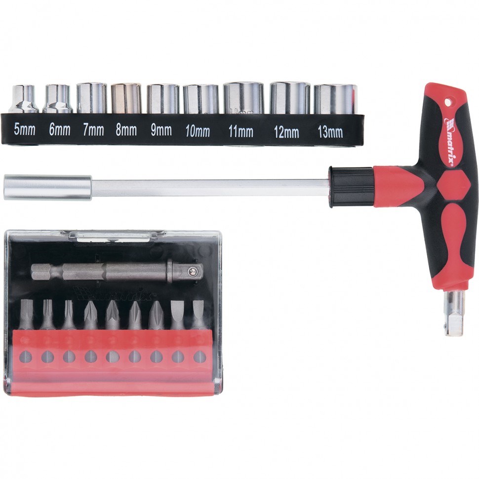 Отвертка с Т-образной эргономичной ручкой, набором бит и насадок, 20 шт, CrV Matrix