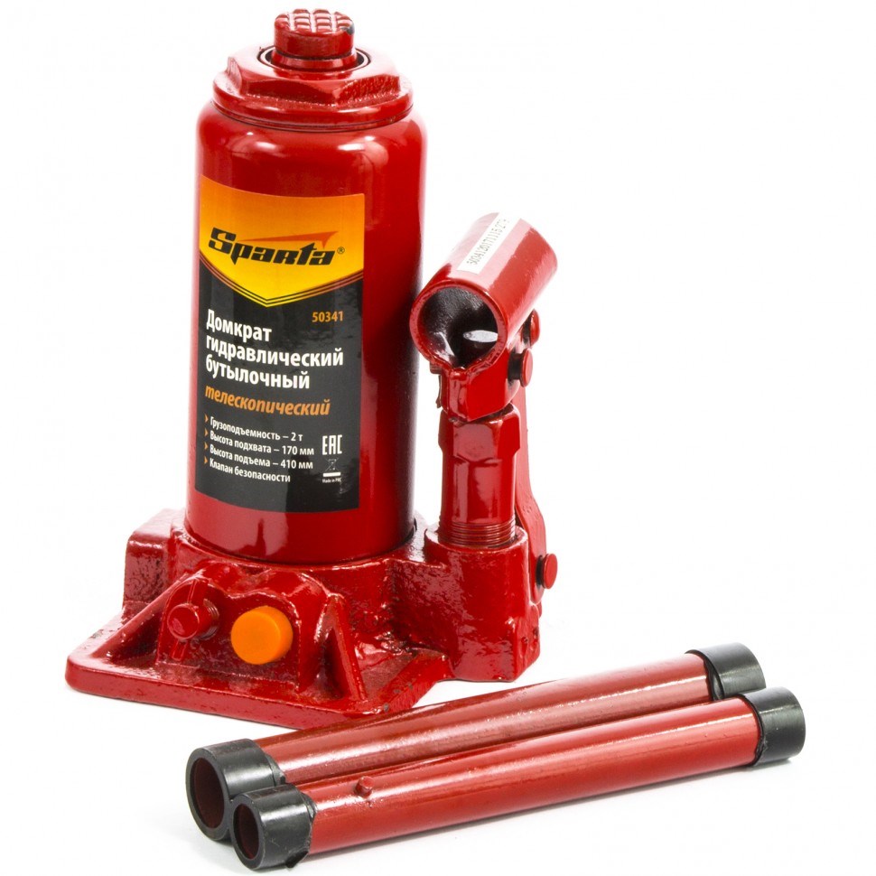 Домкрат гидравлический бутылочный телескопический, 2 т, h подъема 170-410 мм Sparta 50341