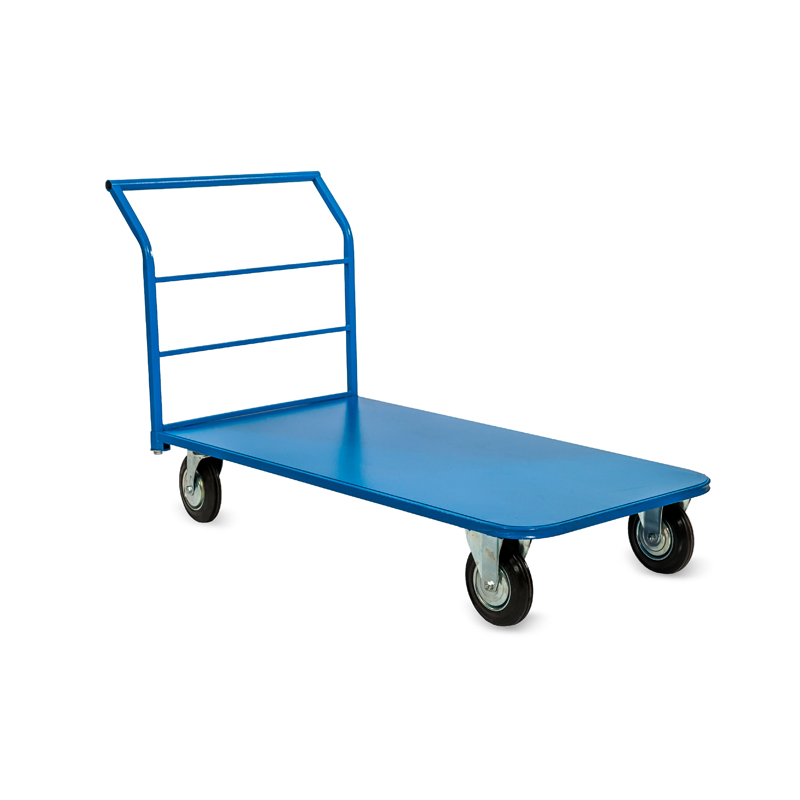 Тележка серии ТП выполнена из металлического каркаса и оснащена удобной металлической ручкой для комфортного управления. Размер платформы 750 на 1400 мм позволяет эффективно управляться с большими объемами груза, что делает эту модель самой большой в своей серии.