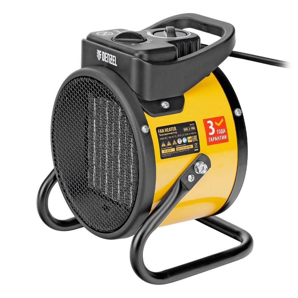 Тепловая пушка, керамический нагреватель (тепловентилятор) DHC 2-100, 230 В, 0.025/1/2 кВт Denzel 96429