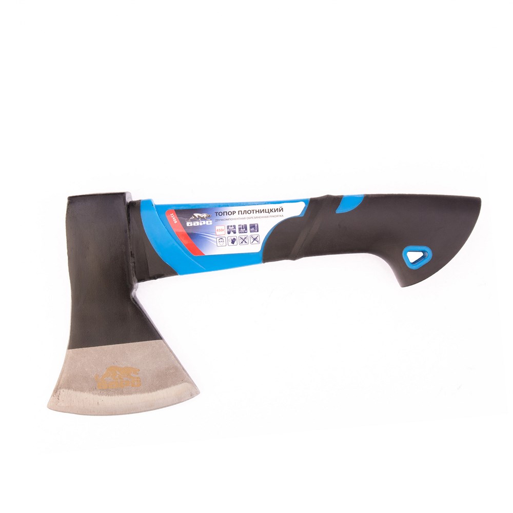 Топор плотницкий, 450 гр, двухкомпонентная обрезиненная рукоятка Барс 21408