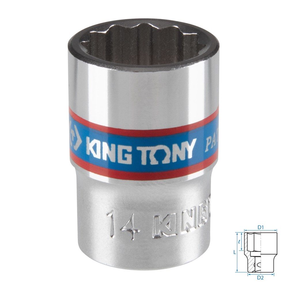 Головка торцевая стандартная двенадцатигранная 3/8", 14 мм KING TONY 333014M TONY
