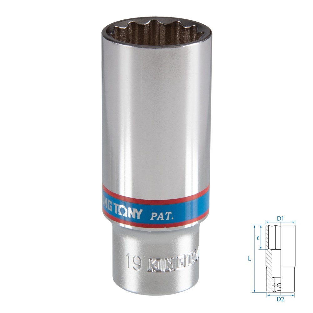 Головка торцевая глубокая двенадцатигранная 3/8", 19 мм KING TONY 323019M Tony