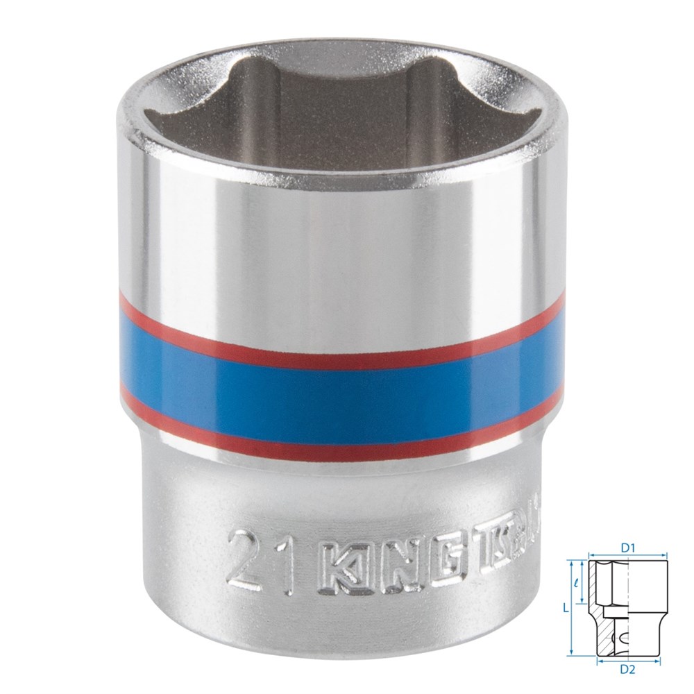 Головка торцевая стандартная шестигранная 3/8", 21 мм KING TONY 333521M TONY